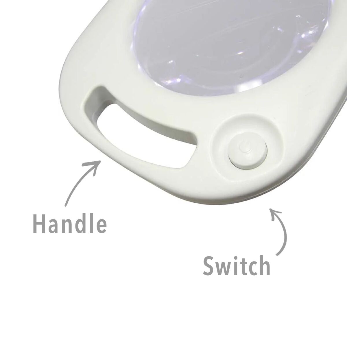 - Integrated switch and handle on lamp head.