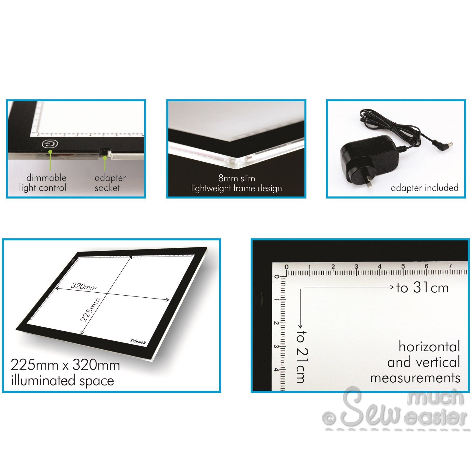 - What's more: the light is dimmable. You can choose the brightness to suit the particular material you're working with - whether you're transferring patterns onto fabric, or tracing fashion illustrations usaing a bank paper pad!