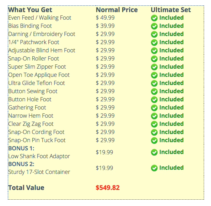 *NOTE: Sewing machine NOT included. You are buying the feet set ONLY.