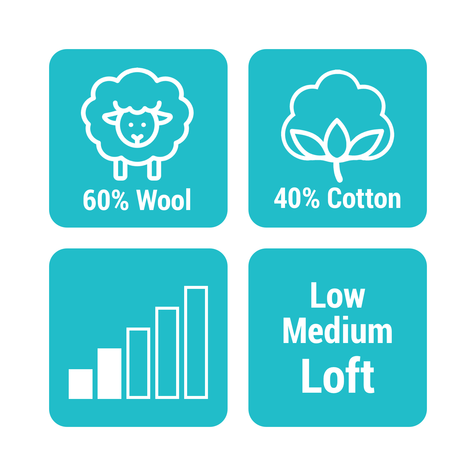 - wool transfers moisture away from your skin, helping maintain an even body temperature throughout the night - so you get a deeper and more restful sleep!