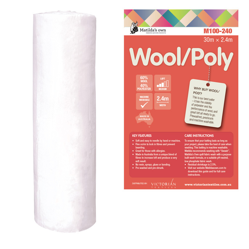 Matilda's Own Wool Poly Batting (240cm Width) - Whole Roll 30m